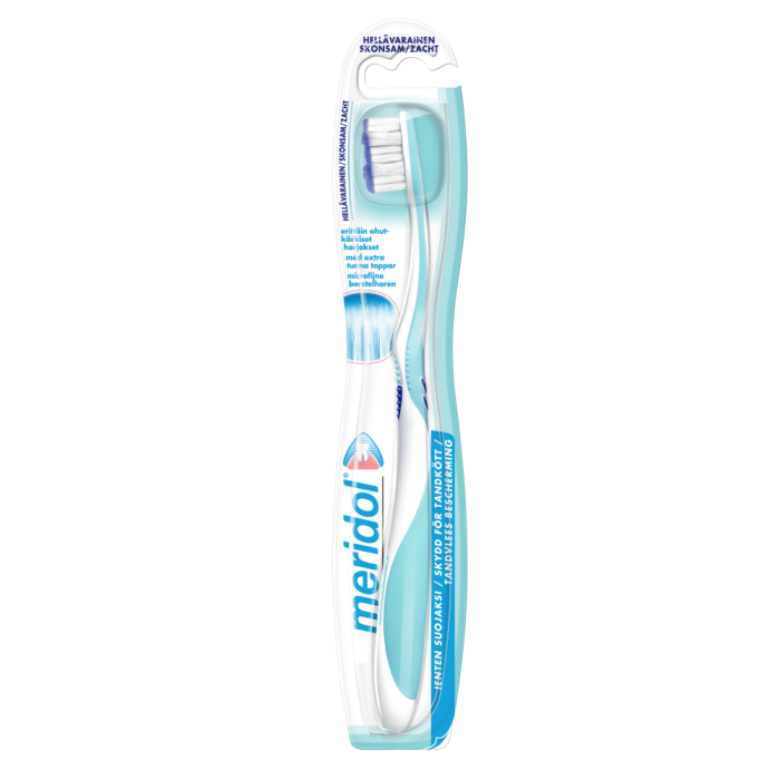meridol®-hammasharja suojaa ja hoitaa ikeniä sen erittäin tiheiden ja ohuiden harjasten avulla, jotka puhdistavat perusteellisesti myös ienrajasta mikä auttaa hoitamaan ärtyneitä ikeniä. Erityisen pieni ja pehmeästi pinnoitettu harjapää mahdollistaa kaikkien hammaspintojen puhdistamisen. Käsiosa on ergonomisesti muotoiltu ja harja on tieteellisesti testattu. Parhaan tuloksen saat käyttämällä harjaa yhdessä meridol®-hammastahnan ja meridol®-suuveden kanssa.